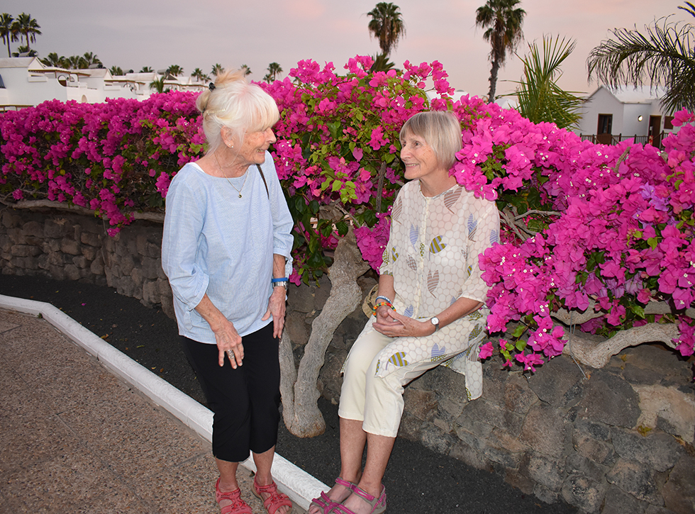 När det blev dags att planera inför PRO:s höstträff till Lanzarote året därpå tog Gunnel initiativet. Hon skickade ett sms till Eeva och föreslog att de skulle resa tillsammans och dela rum. Eeva, som reste från Arlanda medan Gunnel flög från Landvetter, blev överlycklig över förslaget. ”Vi känner oss trygga med varandra och har skrattat massor under veckan,” berättar de.
