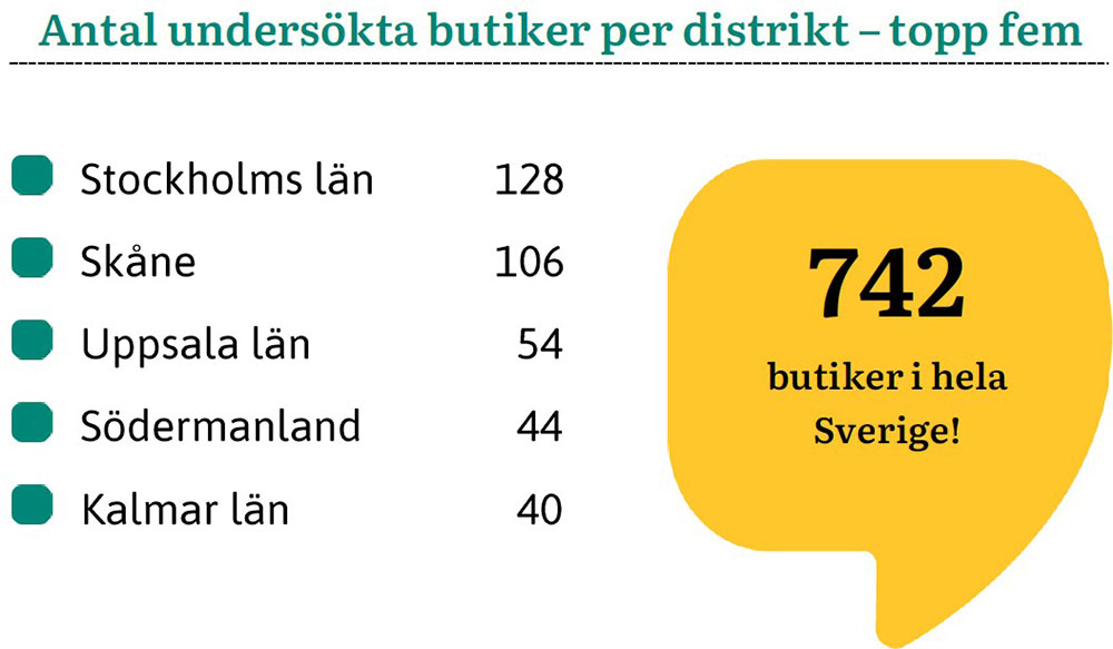 Det var 517 små och 156 stora butiker runt om i landet som granskades samma dag, den 3 november 2025.