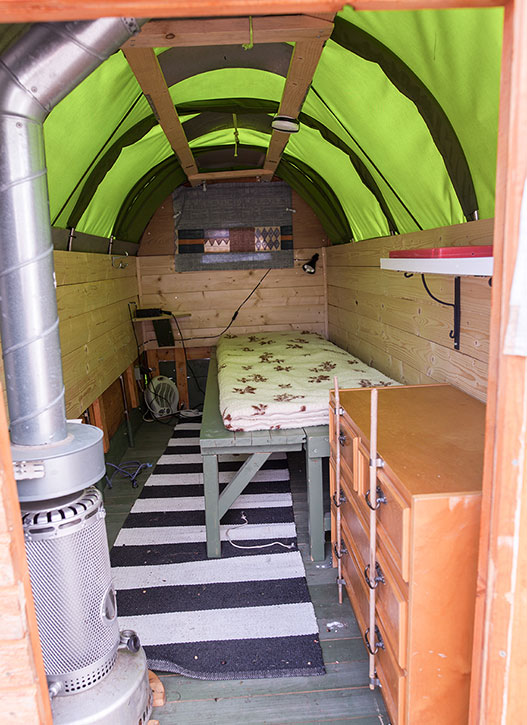 Ger-Åke Sommar ägde en gammal häst­transportsom han byggde om till en vagn med övernattningsmöjligheter. Foto: Peter Fredriksson