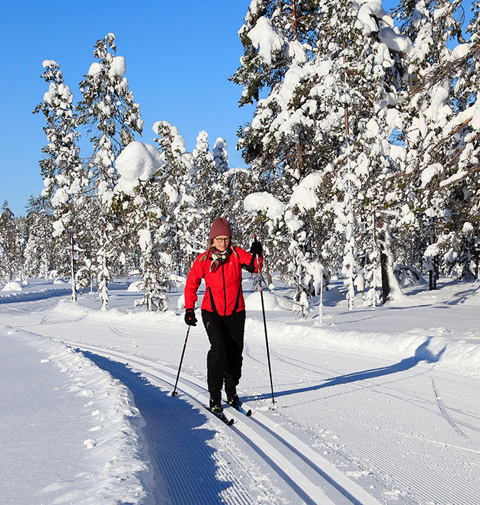 Jag satsar på milspåret, som är flackt i stort sett hela sträckan. Det är perfekta förutsättningar med fem minusgrader och åkning som på räls. Den trolska John Bauer-skogen inbjuder till flera stopp, bara för att njuta av det snöiga landskapet.